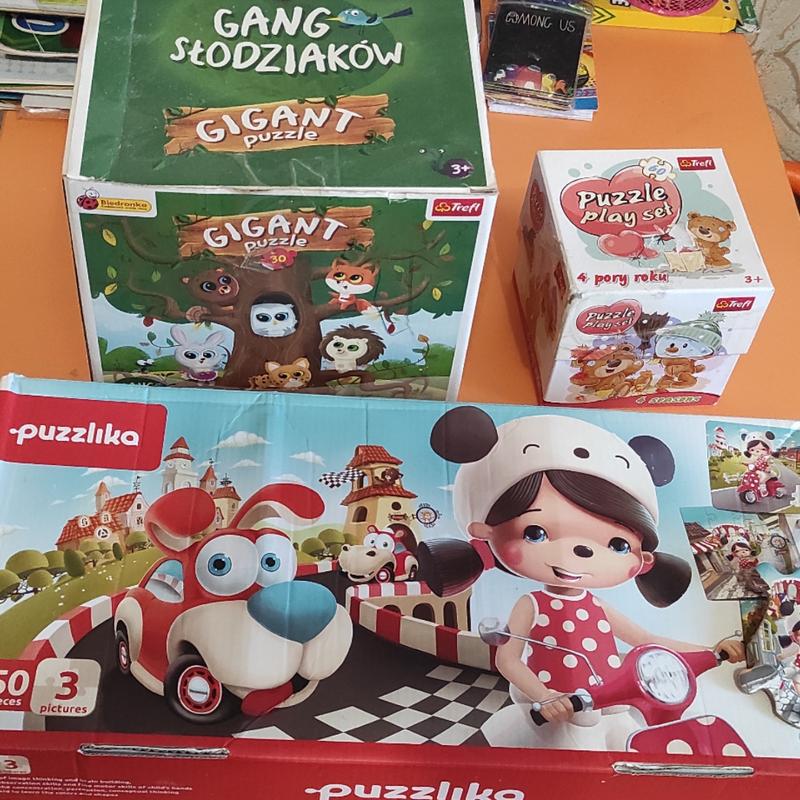 1. Пазли Puzzlika 3в1 Щасливі історії на 9, 12, 25 елементів - 200 грн. 2. Пазли гіганти Trefl Звірята 30 елементів - 115 грн. 3. Пазли Trefl Пори року 60 елементів - 100 грн