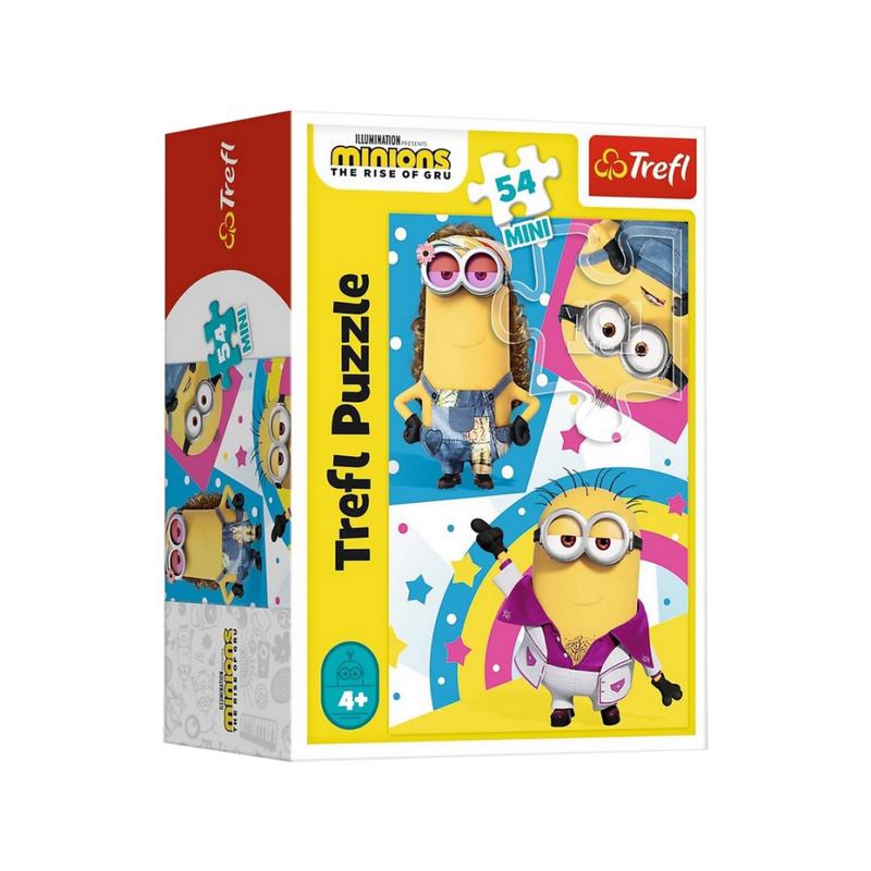 Пазли Міні на 54 елементи із зображеннями персонажів анімаційного серіалу "Міньйони". Які готуються до веселих та енергійних танців.