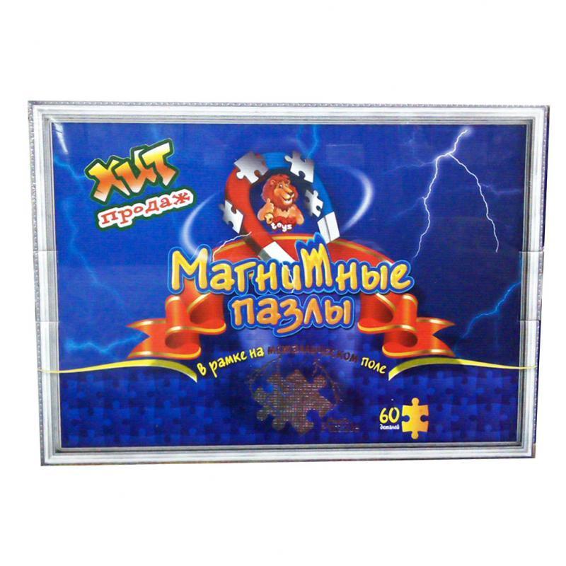 Магнітні пазли 60 елементів. Магнітне поле, деталі. Матеріал - комбінований. Паковання — коробка. Розмір - 37х5х26 см.