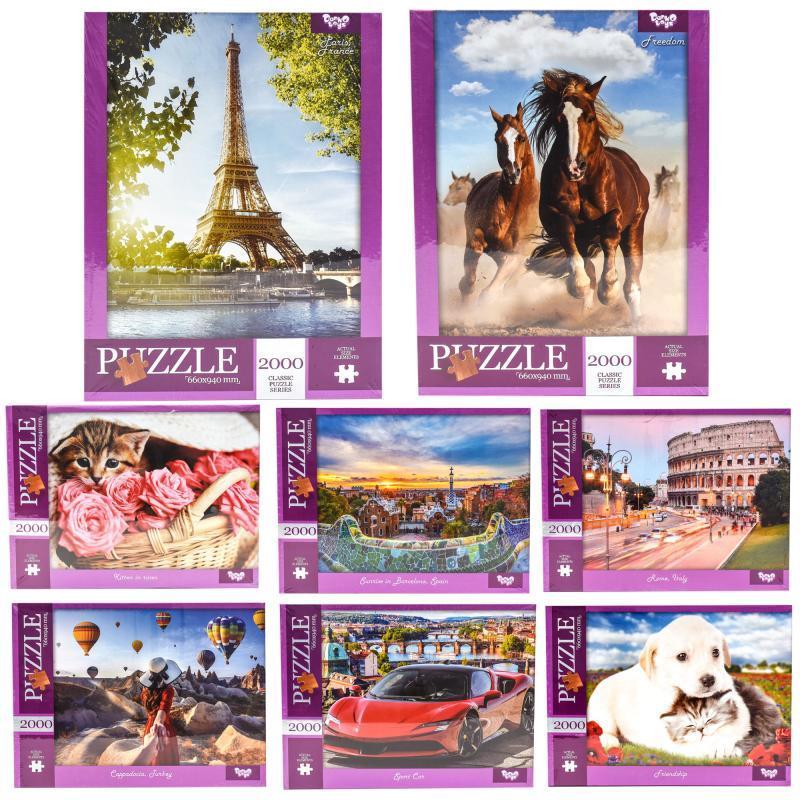 Пазли 2000 елементів, мікс видів. Маленькі деталі. Матеріал - картон. Паковання — коробка. Розмір - 39х5х29 см.