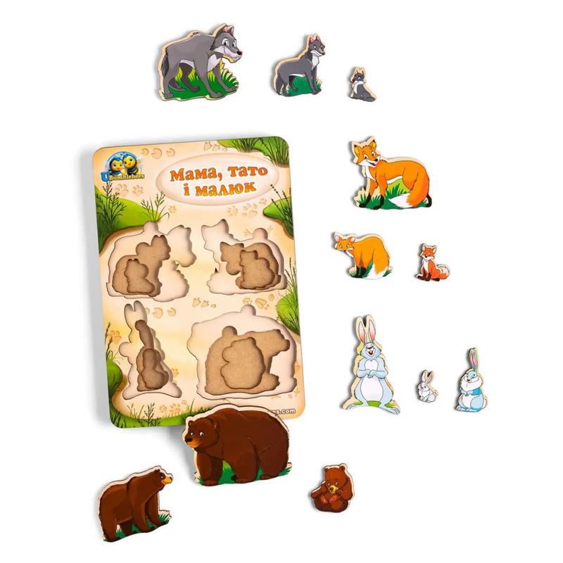 Деревянный пазл-вкладыш "семья-дикие животные" ubumblebees (псд078) psd078 больше-меньше