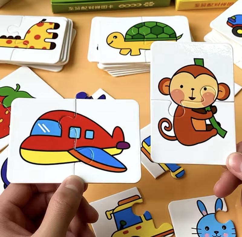 Тематичні картки-пазли для малюків від 1 року. В одному комплекті 16 карток (32 пазли): овочі/фрукти, тваринки, транспорт, предмети.