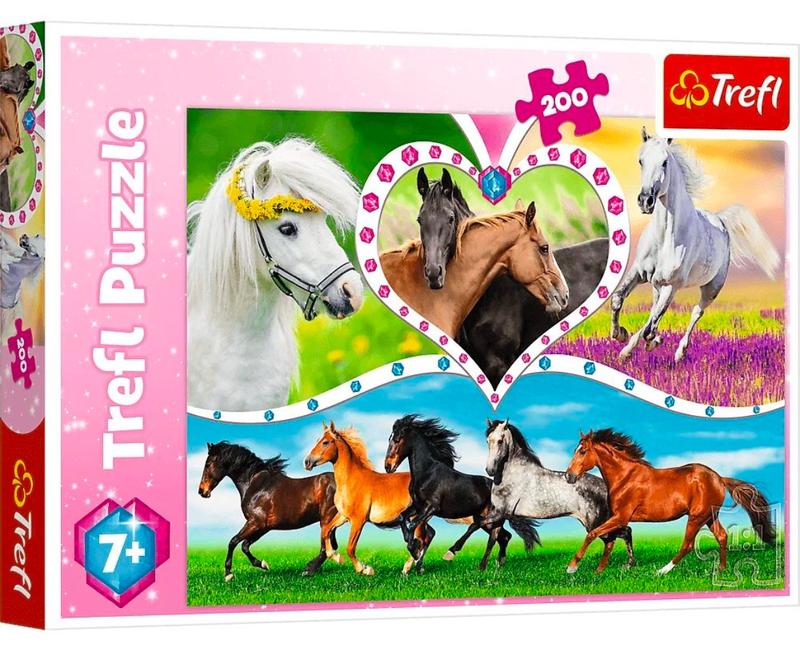 Нові пазли пазл "Гарні коники". Цей пазл складається з 200 елементів, що робить його ідеальним вибором для дітей віком від 6 років і старше, а також для дорослих, які люблять виклики. Кожна деталька пазла виготовлена з високоякісного картону, що гарантує довговічність і зручність у використанні. Зображення на пазлі відрізняється високою деталізацією і яскравістю кольорів.