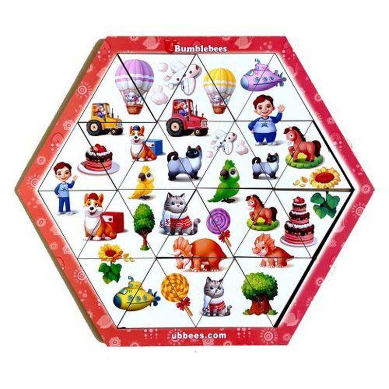 Деталі у вигляді трикутників. Потрібно зібрати пазл із усіх трикутників, на яких зображені половинки різних зображень. Можна вважати готові картинки, вивчати кольори та нові предмети. Бренд: Ubumblebees Упаковка: Плівка Колір: Різнобарв'я Вага з упаковкою: 245 г Габарити в упаковці: 0.5 x 26 x 23 см Країна виробник: Україна Матеріал: Дерево Комплектація: Пазл-головоломка