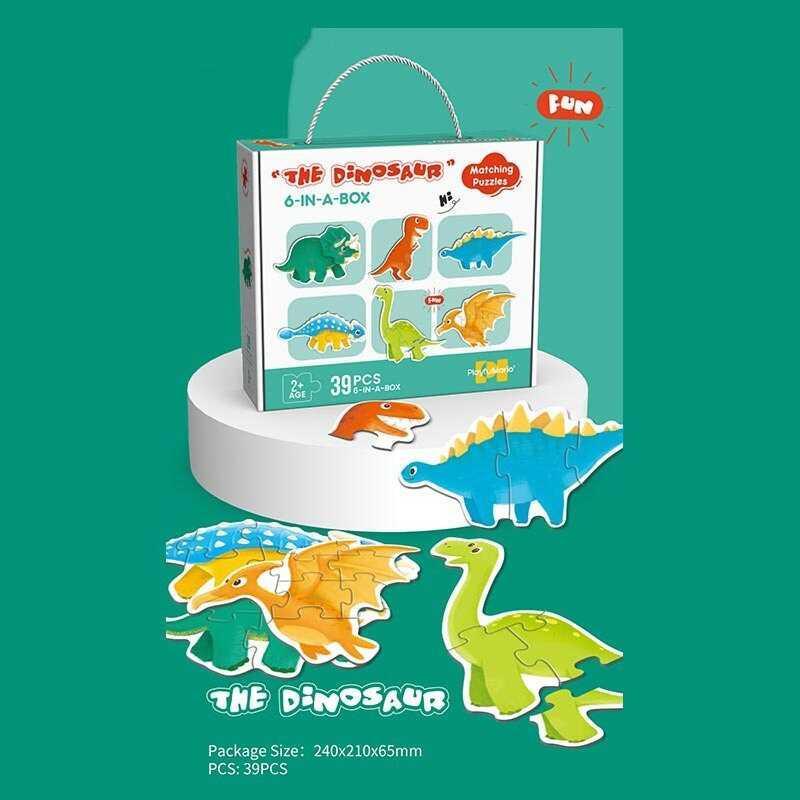 Відкрийте світ динозаврів разом із захоплюючими пазлами! У спекотний літній день у Давній Долині, маленькі динозаврики відчули нудьгу і вирішили пограти у незвичайну гру хованок. Але ці хованки мають свої особливості, адже це пазли, і суть гри полягає не лише у пошуках, а й у складанні частин тваринок! Не бійтеся, це не так складно, як може здатися на перший погляд. Для того, щоб ваш малюк легше знаходив потрібні частини, в комплекті є картонна фігурка, що демонструє, як повністю виглядає кожен динозавр. Особливості набору: - Унікальний набір пазлів, що дозволяє зібрати 6 різних динозаврів; - Чарівний дизайн тваринок, що сподобається дітям; - Усього 39 елементів, які забезпечують цікаве заняття; - До кожного динозавра додається картонна фігурка-експонат; - Великі пазлики, що полегшують гру для малюків; - Виготовлено з міцного картону для тривалого використання.