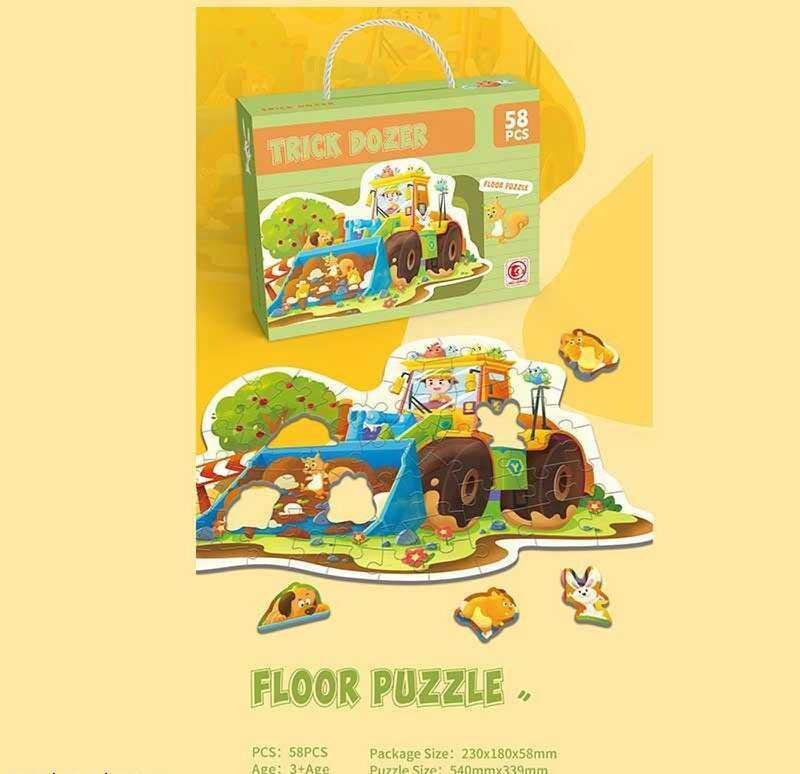 Зануртеся у світ фантазії з нашим пазлом! Діти разом зі своїми улюбленими звірятками знову вирушають у неймовірну подорож. Цього разу вони прибирають ліс і готові запросити вас приєднатися до їхньої захоплюючої гри! Якщо хочете насолодитися цією чудовою картинкою, швидше збирайте пазл. Завдяки великому розміру елементів, навіть найменші дітки з легкістю зможуть скласти цю картинку. Цікавий контур, що повторює силует дерев та бульдозера, додасть атмосферності до гри. Основні характеристики: - 58 елементів у наборі; - На готовому зображенні ви побачите бульдозер; - Великі елементи пазла для зручності гри; - Розмір зображення - 540х339 мм; - Контур пазла повторює силует бульдозера; - Виготовлено з міцного картону, що забезпечує довговічність.