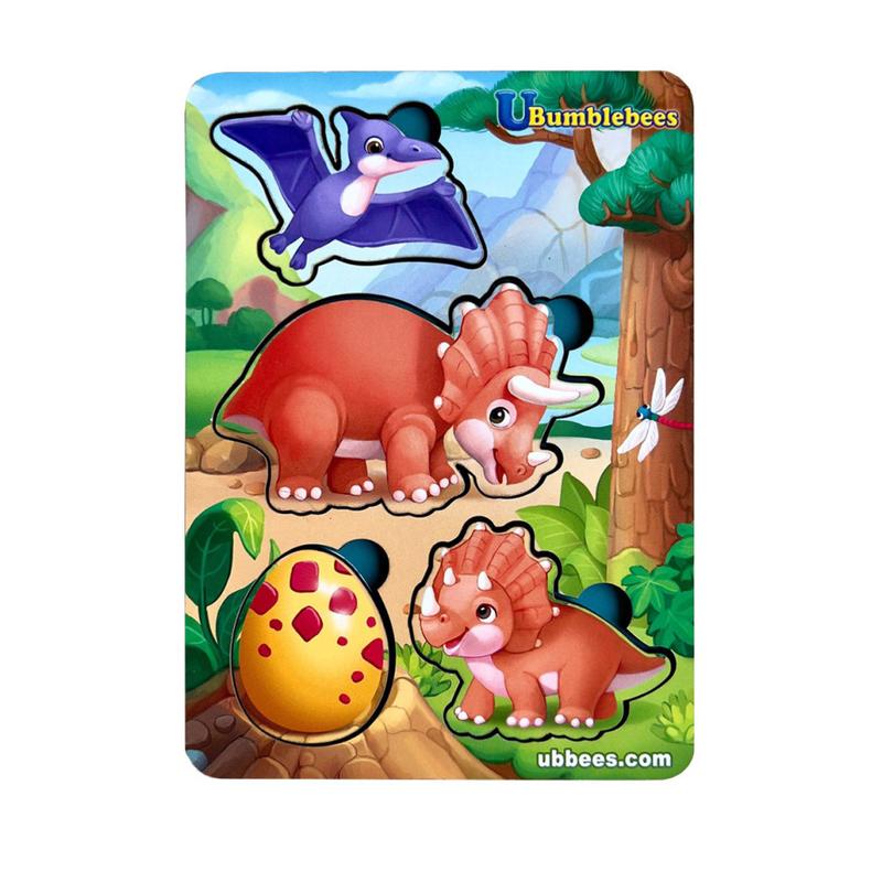 Дерев'яний пазл-вкладиш "динозаври" ubumblebees (псф124) psf124 фон із підказкою