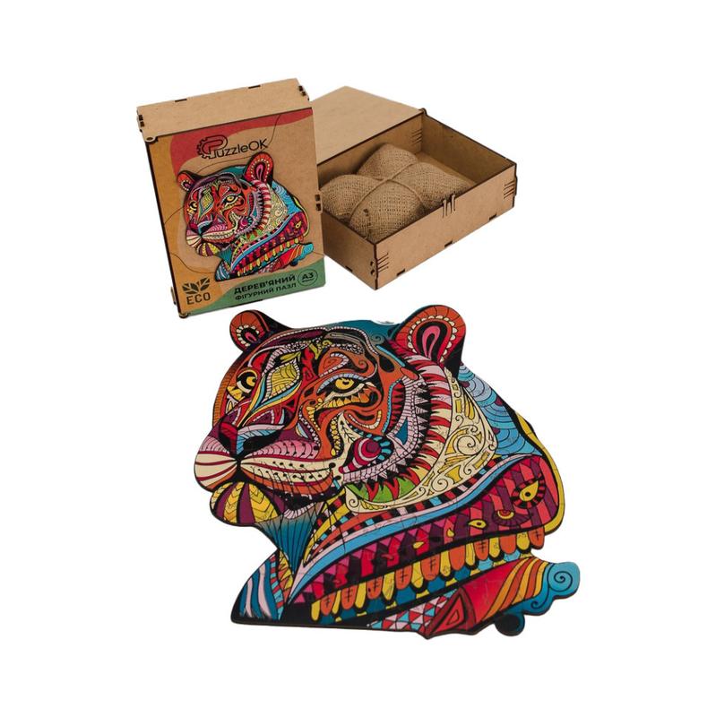 Фігурний дерев'яний пазл a3 "загадковий тигр" puza3-03110, 129 деталей