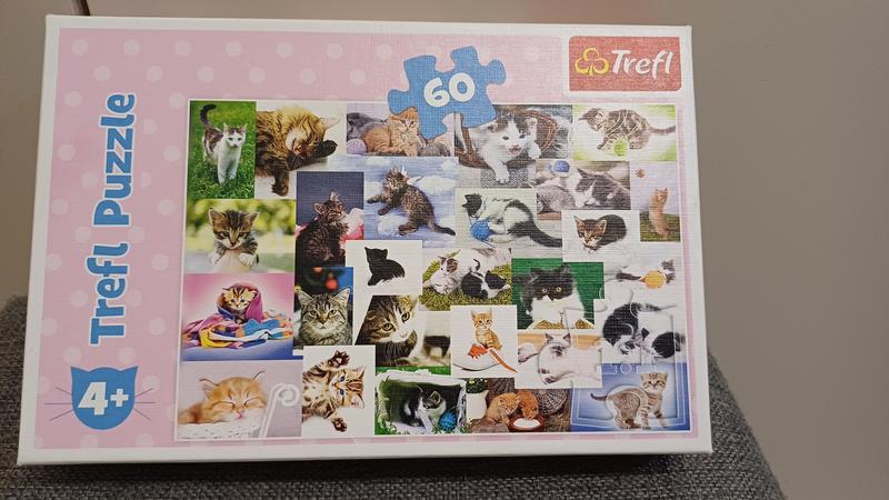 Пазли Trefl "Котячий світ" на 60 елементів, - 75 грн. (Стан нового). Виробник: Trefl, польська компанія. Тема: Колаж із зображеннями різних котів. Рекомендований вік: 4+ (від 4 років). Розмір готової картинки: приблизно 22 x 33 см.