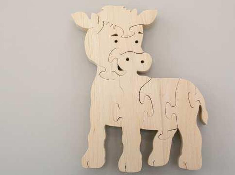 Дитячий фігурний пазл "телятко" 12х10 см ручної роботи з екологічного матеріалу / дитячий...