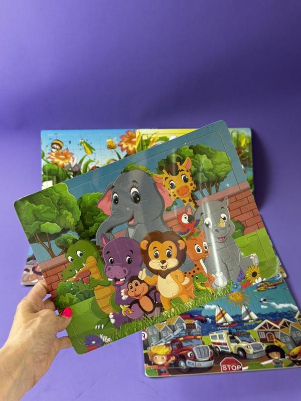 Дерев’яні пазлики з яскравим зображенням милих тваринок та їхніх друзів допоможуть малечі розвинути моторику ручок, координацію рухів та логічне мислення. Адже це так цікаво розв’язати, на перший погляд, складну головоломку, а потім насолоджуватись гарним зображенням, яке вийшло. Особливості: - гра складається з 60 елементів та дерев'яної рамки; - розмір готового зображення: 30х22.5х0.5 см; - під час гри дитина розвиватиме моторику рук, координацію рухів та логічне мислення; - ігрові елементи виготовлені з деревини та пофарбовані якісними барвниками. * Характеристики та комплектація товару можуть змінюватися виробником без повідомлення