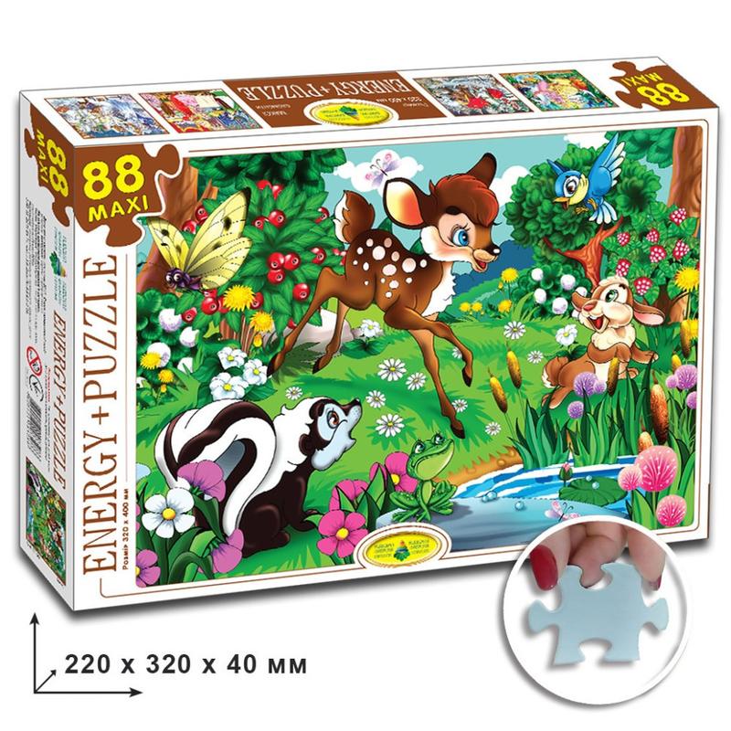 Представлені в новій колекції, захоплюючі пазли 88, Арт.ЕГ-02. Бембі 83286 - продуманий, компактний набір, який включає в себе 88 деталей. З окремих елементів Вашому дитина має скласти красиву картинку розміром 300 х 420 мм із зображенням сюжету улюбленої казки з однойменною назвою. Юні любителі чарівництва будуть в захваті від оригінальної картинки, сучасної ідеї і чудової якості виготовлення. Набір від української торгової марки «Енергія Плюс» зацікавить і хлопчиків, і дівчаток завдяки універсальності сюжету. Захоплюючий, барвистий пазл - екологічно чиста, безпечна для дитячого здоров'я гра, яка виконана з ущільненого картону товщиною 2 мм з білим оборотом. Забава позитивно впливає на психоемоційний стан, допомагає розвинути посидючість і цілеспрямованість. Якщо Ви шукали одночасно захоплюючу і корисну розвиваючу гру, то колекція тематичних пазлів «Енергія Плюс» створена спеціально для Вас.