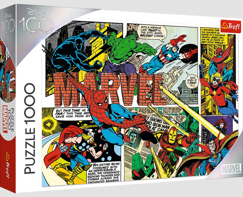 Пазлы 1000 деталей "Непобедимые Мстители Марвел". После расстановки будет создана картинка размером 68 х 48 см. Высокое качество, насыщенность цвета и безопасная сборка обеспечивается каландровой светоотражающей бумагой, покрытой экологичными пищевыми красками.
