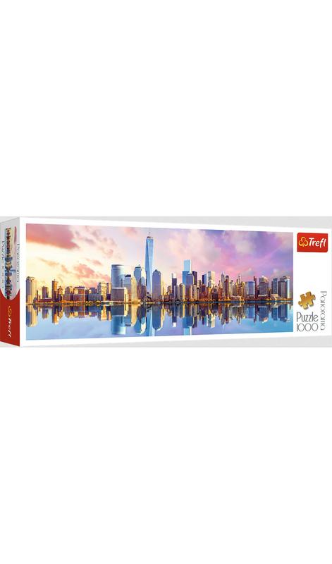 Панорамный пазл с 1000 деталей Манхэттен. После сборки пазла будет создана картинка размером 97х34 см. Высокое качество, насыщенность цвета и безопасная сборка обеспечивается каландровой светоотражающей бумагой, покрытой экологичными пищевыми красками.