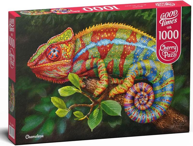 Пазли Преміум Хамелеон на 1000 деталей CherryPazzi. Після складання буде створена яскрава картина розміром 50 х 70 см. - пазл для дорослих та підлітків. Це чудова розумова головоломка, що заспокоює мозок і викликає стан творчої медитації. Пазли мають зображення високої роздільної здатності з дуже високою чіткістю друку, що робить дрібні деталі чітко видимими. Вони вкриті високоякісною олійною фарбою. Матеріал фарби не токсичний, безпечний та не має запаху. У міцних коробках знаходяться деталі пазла різної форми завтовшки 2,2 мм.