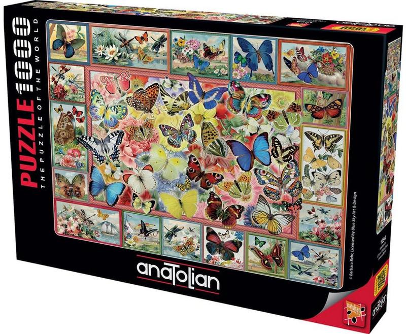 Пазл складається з 1000 деталей, "Метелики". Після складання буде створене зображення розміром 660x480 мм. Anatolian Puzzle -- це весела діяльність, якою можна займатися поодинці чи в групі. Це чудовий подарунок для будь-якого віку на дні народження, свята та особливі події. Завдяки картонній підставці, що входить до комплекту, ви можете розмістити кришку візуальної коробки вертикально/горизонтально Яскраві кольорові зображення, наклеєні на щільний спеціальний блакитний картон для пазлів, вирізані спеціальним інструментом для висікання ручної роботи. Завдяки високоякісним матеріалам і технологіям, які використовуються у виробництві продукції, вироби мають антивідблискову поверхню.