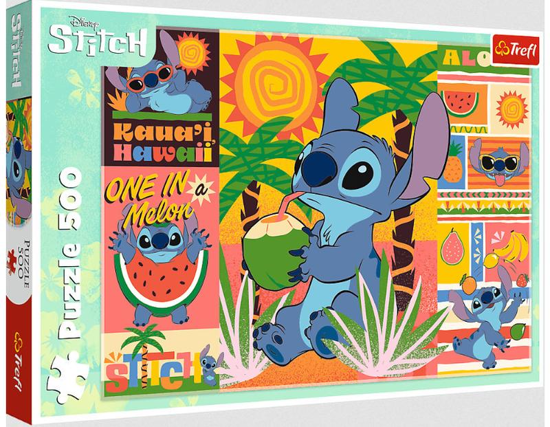Пазл 500 деталей "Канікули зі Стічем". Після складання буде створена картинка розміром 48х34 см. Висока якість, насиченість кольору і безпечне складання забезпечується каландровим світловідбиваючим папером, покритим екологічними харчовими фарбами.