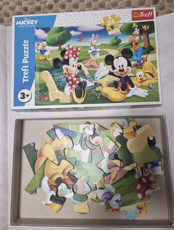 Дитячі пазли з улюбленими героями Disney. • 24 великі деталі maxi розміру • Яскрава картинка з Міккі Маусом та друзями • Рекомендований вік: від 3 років • Виробник: Trefl • Розвиває логічне мислення та дрібну моторику • Безпечні матеріали Ідеально підходить для перших знайомств малюків зі світом пазлів. Великі деталі зручно тримати маленькими ручками.