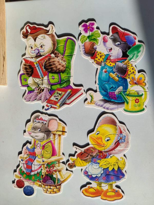 Пазли в ідеальному стані , немає плям,заломів,загинів, счесов. Картинка ціла . 4 пазла на 4,5,6,7 елемента. Розмір коробки 25x18x4 см Розмір в зібраному вигляді 23x16 см Розвивають логічне мислення, дрібну моторику рук, посидючість. Бренд: Castorland Упаковка вся переклеєна скотчем ,але пазли в ідеалі БЕЗ ТОРГУ Пересилаю будь поштою, Самовивіз м. Дарниця і м. Почайна