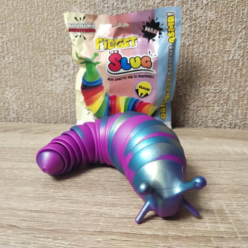 СЛИМАК - це незвичайна та цікава іграшка 2 в 1. Адже це іграшка-антистрес, а ще - колекційна фігурка! Малюкам буде весело грати з такою яскравою іграшкою, а ще вона допоможе розвивати дрібну моторику. А дорослим буде смішно та комфортно знімати стрес! Слимак складається з різнокольорових елементів, які приємно перебирати в руці. Іграшка ніби «переливається», коли Ви її тримаєте, і легко знімає стрес. Кожного слимака можна роз'єднати на дві частини та зміксувати з іншими слимаками, створюючи свого власного героя. Головне, щоб поділ іграшок був у однакових частинах. У кожного героя своє унікальне забарвлення: є веселкові, біло-фіолетові та навіть синьо-жовті. Кого Ви оберете? У серії 7 різних героїв - зберіть їх усіх!