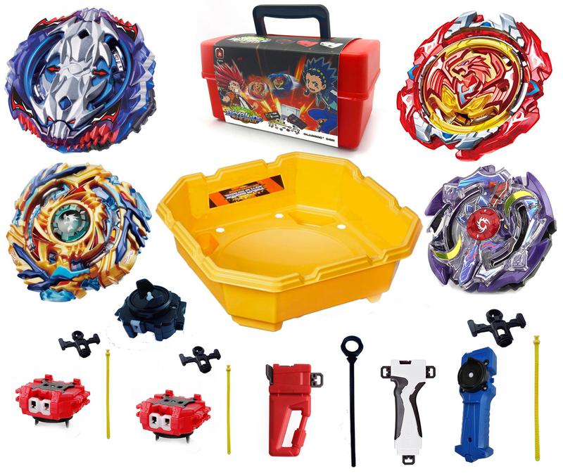 Бейблейд набор 12 в 1 арена 40см + 4 волчка + 4 запускача + 2 ручки + бокс для хранения 30...