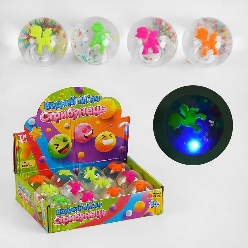 Погрузитесь в магию водного мира! Добро пожаловать в мир веселья и волшебства вместе с водными мячиками- скакунчиками от бренда “TK Group”. Эти яркие и прозрачные шары превратят любое приключение в незабываемое путешествие, даря радость и восхищение! Каждый мячик-скакунчик наполнен блестками, бусинами и сказочными фигурками, которые грациозно плавают в воде. С момента, когда вы его сожмете или ударите, мячик активирует свой магический механизм, зажигая яркую подсветку, которая захватывает взгляд. Эти водные мячики-скакунчики не только дарят радость, но и развивают творческое мышление, фантазию, логику, ловкость и мелкую моторику рук. Диаметр шара составляет 6,5 см, а качественная резина и заполнение водой обеспечивают безопасность и надежность в использовании. Особенности: - Стильный волшебный дизайн; - Прозрачная поверхность для наблюдения за ярким наполнением; - Разнообразные сверкающие элементы; - Милая фигурка единорога; - Активируется яркая подсветка; - Развивает творческие способности и моторику;