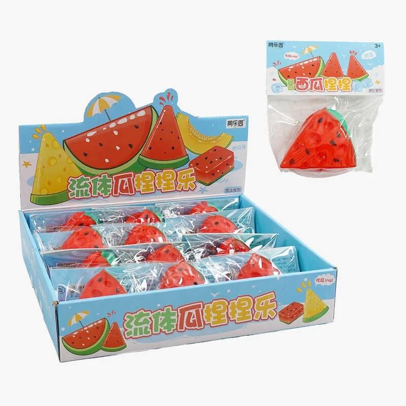 Яскрава антистрес іграшка «Кавунчик» Ця м'яка іграшка у вигляді соковитої скибочки кавуна допоможе зняти напругу та розвинути сенсорне сприйняття. При натисканні всередині перекочується піна, що створює приємні тактильні відчуття й розвагу для рук. - Розмір: 7х4х8 см - М'який приємний на дотик матеріал - Форма соковитого кавунчика - Підходить як антистрес або сувенір - Рекомендовано для дітей від 3 років