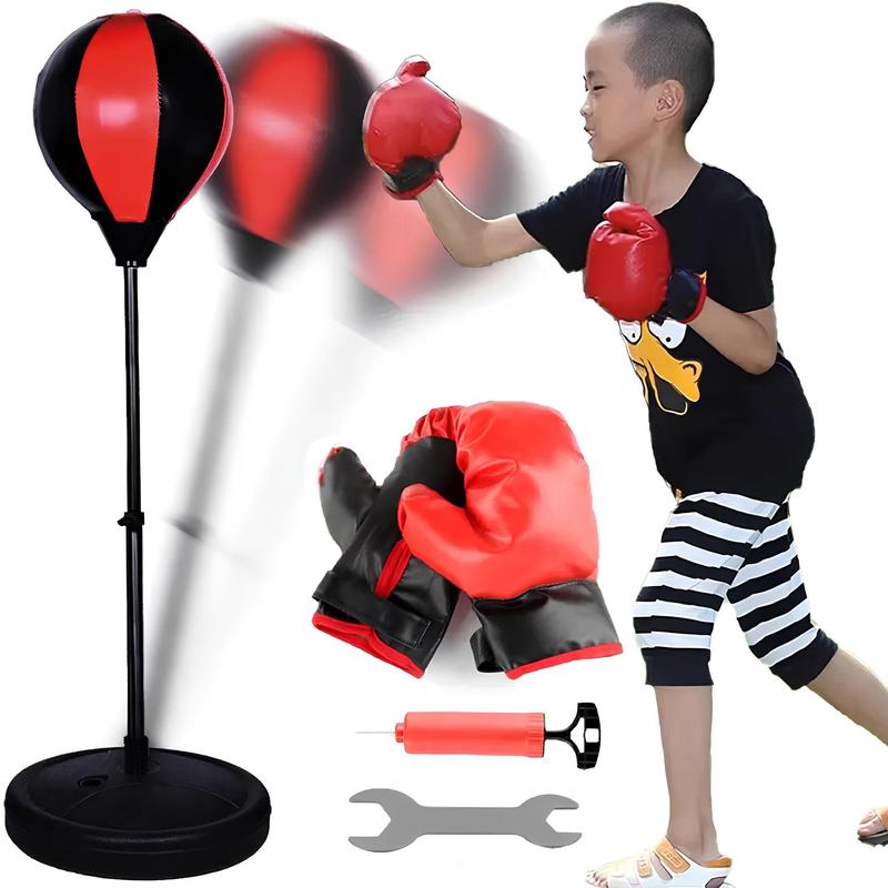 Боксерская груша -- это увлекательный и безопасный способ развивать физическую активность и координацию у детей, позволяя им весело проводить время, тренироваться и улучшать свои боксерские навыки в домашних условиях. Преимущества: - Выполнена из искусственной кожи - Развитие спортивных навыков - Надежная конструкция - Комфортные перчатки - Устойчивое основание - Для детей всех возрастов - Насос в комплекте Описание: Детский боксерский набор для детей, изготовлен из качественной искусственной кожи, станет прекрасным аксессуаром для тренировок и игр. Его прочная конструкция обеспечивает долговечность и безопасность даже при активных нагрузках. Перчатки из кожзаменителя с мягкой набивкой гарантируют комфорт и надежную защиту детских рук. Стойка груши выполнена из прочного металла, что обеспечивает устойчивость во время занятий. Пластиковое основание надежно фиксирует груша на полу, предотвращая ее смещение и обеспечивая безопасность ребенка. Этот набор станет отличным выбором для детей, желающих заниматься спортом и развивать навыки в боксе или других единоборствах. Характеристики: - Тип: Груша боксерская детская - Возрастная группа: для детей - Материал груши: искусственная кожа - Материал перчаток: кожзам с набивкой - Материал стойки: металл - Материал основания: пластик - Особенности: регулируемая высота - Высота стойки: 80-110 см - Диаметр груши: 20 см - Тип груши: надувная Комплектация: - Детская боксерская груша на стойке - Перчатки - 2 шт - Основание - Гаечный ключ - Насос - Крепление - Упаковка