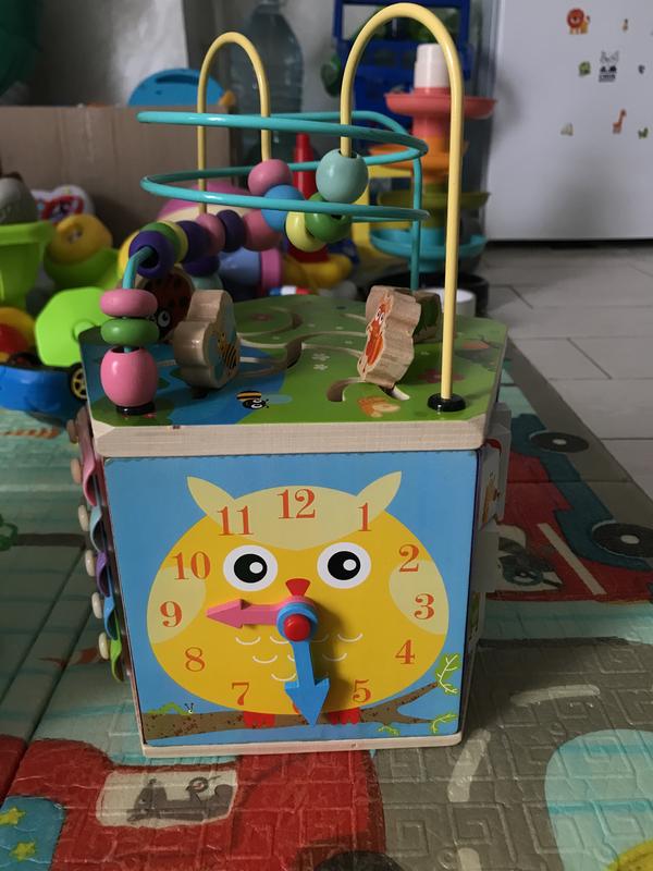 Деревянный логический куб 18515 от "Fun Game" - это целый игровой центр у Вас дома! На всех гранях куба установлены оригинальные игровые панели, каждая из которых направлена на развитие определенных навыков ребенка. С помощью такой игрушки обучение ребёнка будет не только быстрым, но ещё и весёлым, ярким и интересным! Во время игры малыш сможет изучать новые формы и цвета, тренировать мелкую моторику, логику и воображение! Многофункциональный куб включает в себя: - пальчиковый лабиринт; - сортер; - ксилофон; - деревянный лабиринт; - циферблат часов с вращающимися стрелками; - вращающиеся шестеренки; - вращающиеся кубики с изображениями животных и цифр. Все детали игрушки изготовлены из качественной древесины, окрашены в яркие цвета и приятны на ощупь.