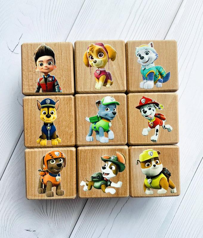 Дитячі розвиваючі дерев'яні кубики із зображеннями цуценят патруль (комплект 1)