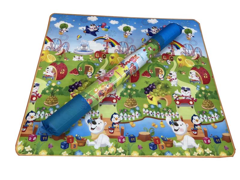 Дитячий двосторонній килимок Дитячий ігровий термокилимок Задовольнить потреби дітей від народження до 7 років. Це універсальне складне покриття підійде для повзання, перших кроків, навчання та витівок. М'яка рифлена поверхня не пропускає холоду, зможе попередити падіння, захистить від травм і ударів, зробить масаж п'ят, поглине шум від стрибків. З двостороннім килимком, що розвиває, ви з легкістю створите чудову ігрову зону для свого малюка. На кожній стороні килима зображені яскраві та життєрадісні тематичні малюнки: підводний світ, літери, забавні тварини, які допоможуть у навчанні, пізнанні світу та розвитку мови. Матеріалом килимка служить харчовий спінений поліуретан (XPE). Він нетоксичний та гіпоалергенний. Верхнім покриттям виробу є харчова плівка, яка захищає малюнок від пошкоджень та робить його стійким до вологи. Дитячий килимок - міцний; - зносостійкий; - водонепроникний; - не вбирає запахи; - легко складається та розкладається; - має теплоізолюючі та шумоізолюючі властивості; - не важкий - 1,2 кг; - має великий розмір - 180*200 - має антиковзну поверхню; - амортизує удари під час падіння; - чудово миється під душем або протирається вологим рушником; - малюнки не вигоряють та не витираються; - має сертифікат якості; - підходить як домашнього використання, так виїздів на природу.