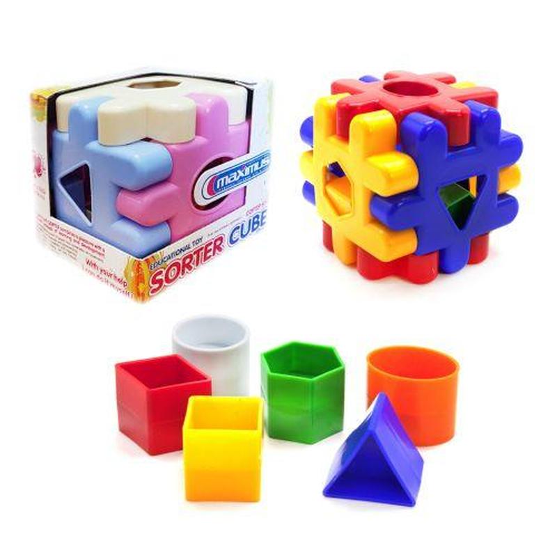 Сортер куб із геометричними фігурами. Сортер — це іграшка, мета якої правильно поєднати фігурки у формі різних геометричних фігур із прорізами на гранях куба. 2 різновиди в асортименті. Бренд: Максимус Паковання: Коробка Колір: Різнобарв Вага в упаковці: 255 г Габарити в упаковці: 13 x 13 x 13 см Габарити без паковання: 12 x 12 x 12 см Страна виробник: Україна Матеріал: Пластик Комплектація: Сортер куб, 6 геометричних фігур