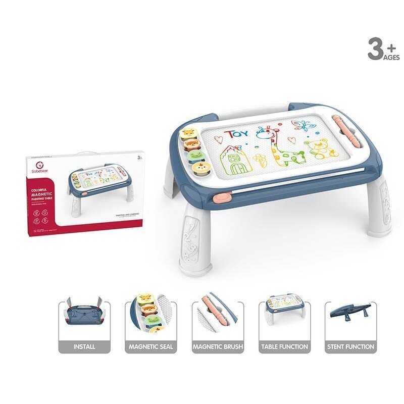 Столик с магнитной доской для рисования – замечательное приобретение для творческого ребенка. Взяв в руки волшебную ручку и вырисовывая ею различные линии, на игровом полотне будут появляться разноцветные рисунки. И для этого совсем не нужны краски или маркеры. А 4 магнитных штампика в форме треугольника, квадрата, круга и цветка помогут создавать креативные изображения. Какие именно – зависит только от фантазии малышей. Особенности: - разноцветное поле для рисования; – специальная ручка с магнитным наконечником позволяет создавать яркие изображения; - в комплекте представлены 4 магнитных штампа; - благодаря дополнительным выдвижным ножкам игрушку можно устанавливать на столе под удобным углом; - поле восстанавливается с помощью бегунка; - съемные ножки; - размер доски для рисования: 30х21 см; - размер столика: высота – 20 см; длина – 45 см; ширина – 35 см. * Характеристики и комплектация товара могут изменяться производителем без уведомления