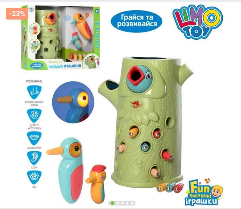 маю таку ігру у дуже гарному стані, є ще коробка,і пташка співає на батарейках є один дефект -немає одного червачка дуже цікава гра ,розвиває моторику