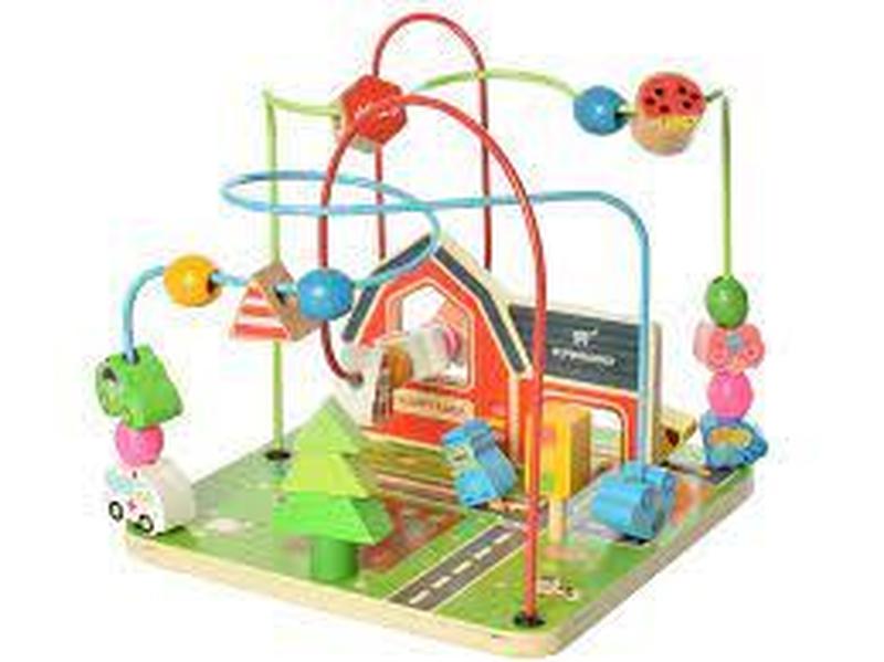 Деревянная игрушка Лабиринт MD 2053 на проволоке, город, машинки лабиринт, фигурки