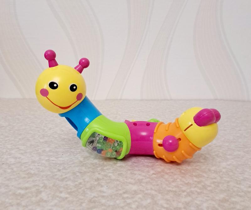Гусеница -тарахилка, погребушка, подвижные части, есть грызунок. Для самых маленьких деток, с 6-ти месяцев. Распаковать, но не играли. Коробка не сохранилась тому и цена занижена.