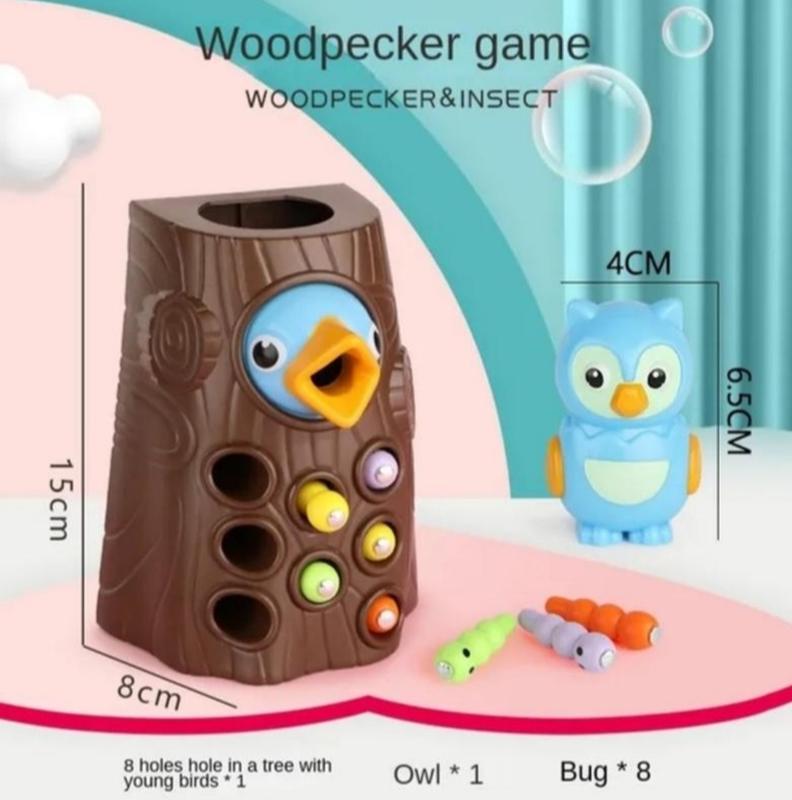 Іграшка сова, дятел, пташеня, гра, пластик, нагодуй дятла, черв'яки, черв'як