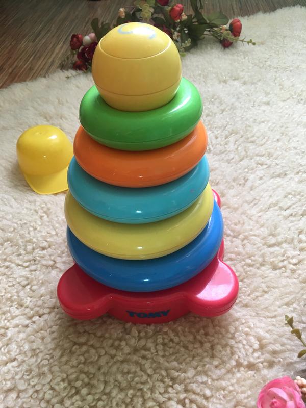 Піраміда от tomy / развивающаяся разноцветная пирамида с шариком погремушкой