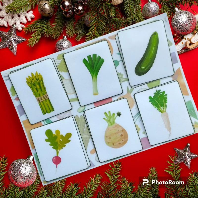 Дитині потрібно знайти овоч відповідно до тіні. Гра складається з аркуша А4 та 6 деталей на липучках.