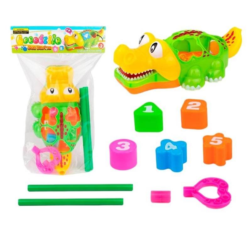 Каталочки крокодил на паличці, сортер вкладиші геометричні фігури, в пакеті, 26*15см,