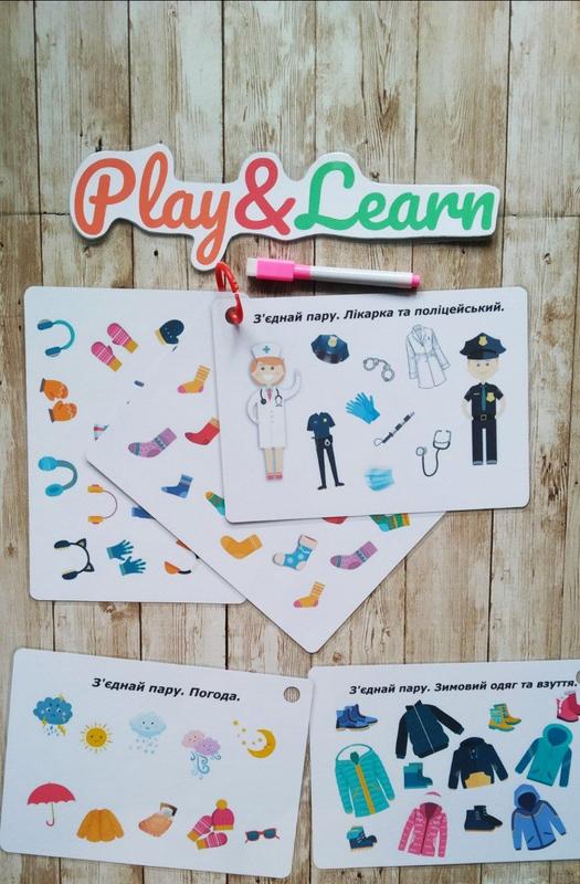 Гра "Знайди пару". 5 двосторонніх карток/10 завдань. У набір входить водний маркер (можна використовувати багаторазово). Формат карток: А5. Вартість: 80 грн