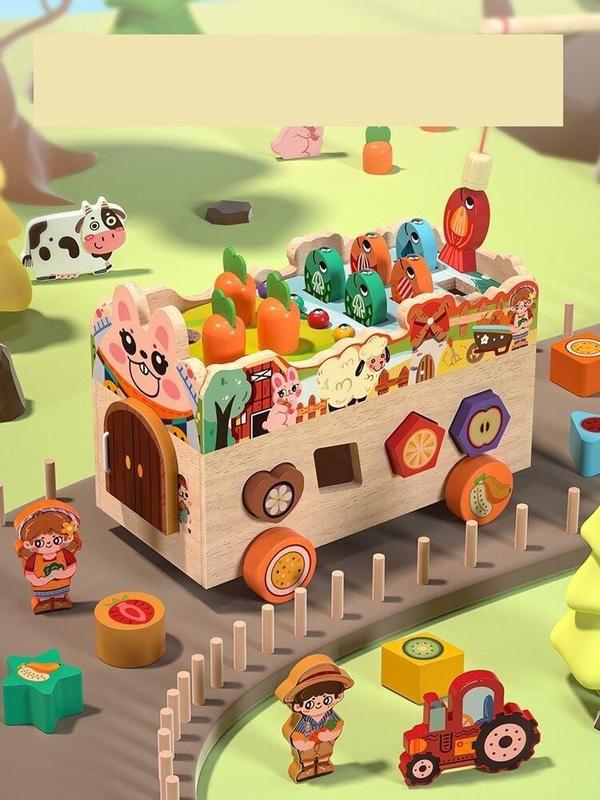 Цікава гра у вигляді машинки точно буде до вподоби малюкові, адже вона яскрава та містить багато елементів, які не залишать без веселощів та гарного настрою. Іграшка виповнена у вигляді автобуса, який має колеса, дверцята, що можна відкривати, сортер та магнітну риболовлю. Всі елементи дерев’яні та не містять шкідливих для здоров'я речовин. Особливості: - іграшка виглядає як транспортний засіб; - виконана з дерева; - містить гру-сортер з морквами, магнітну риболовлю (верхні знімні платформи), геометричний сортер (по боках); - до магнітної риболовлі додається вудочка; - дверцята можна відкривати; - гра сприяє розвитку дрібної моторики та уявлення. * Характеристики та комплектація товару можуть змінюватися виробником без повідомлення