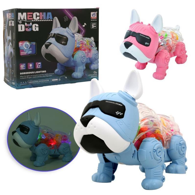 Музична іграшка собака 19см, шестерні, 2 режими, ходить, музика, світло, 2 кольори, 8213a