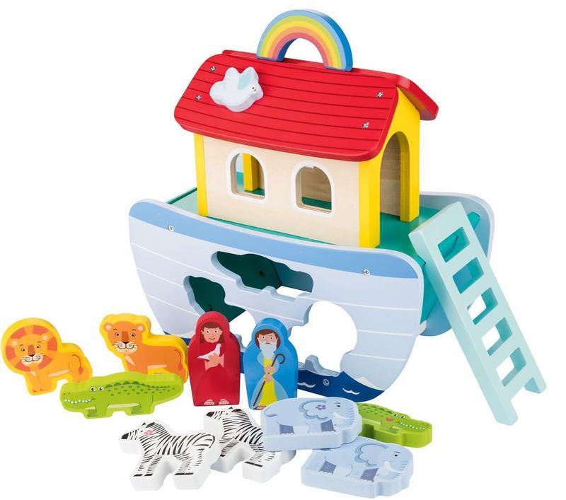 Виробник: Інший виробник Стать: Унісекс Вік: 2 роки Тип іграшки: Сортери Матеріал: Дерев'яні Великий ігровий дерев'яний набір-сортер Ноїв ковчег зі сходами Playtive Німеччина 12 деталей В ігровій формі сприяє розвитку дрібної моторики та розпізнавання форми. Барвистий ковчег із 10 фігурками з натурального дерева. З завантажувальною кришкою та ручкою. Комплектація: 2 особи, 2 лева, 2 крокодила, 2 слони, 2 зебри, 1 дерев'яна драбина, голуб, ковчег. Розмір 14 x 30 x 28 см