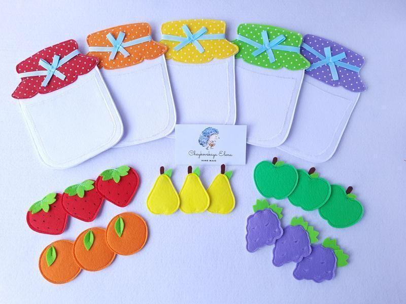 Сортер "фрукты" развивающая игрушка из фетра. учим цвета. баночки из фетра. монтесорі