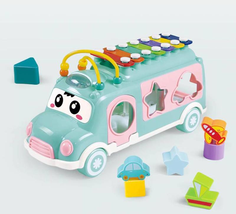 Дитяча розвиваюча гра сортер автобус he8019 з ксилофоном бірюзовий