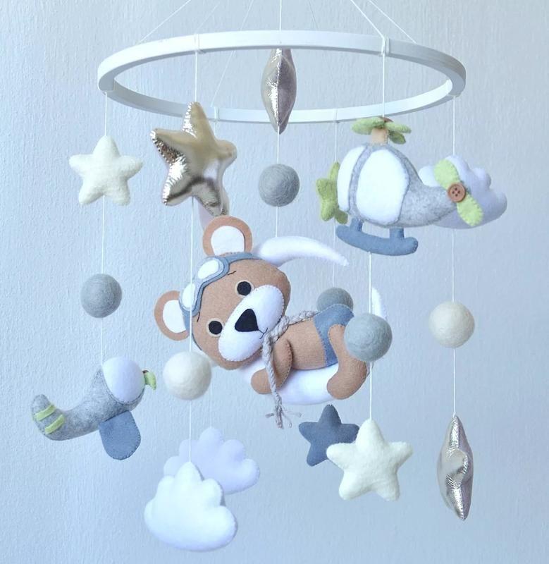 Мобіль виконаний з корейського та американського фетру. Наповнювач гіпоалергенний холофайбер, повністю ручна робота. Розмір основи 25 см . Мобіль "Маленький пілот" . . ⭐ Вартість основи з іграшками 1800 грн ; . ⭐ Тримач/кронштейн 240 грн; . ⭐ Музичний блок на 35 мелодій з регулюванням гучності 350 грн Додаткові характеристики: Стать: Для хлопчиків Вік: До 1 року Матеріал: Фетр Вид: Брязкальця Товар виготовляється на замовлення