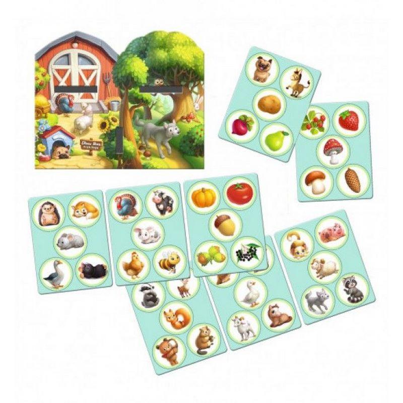 У наборі: 40 плашок і яскравий комодик, розділений на 2 скарбнички, у які дитині потрібно правильно розсортувати звірів: дикі в ліс, а домашні на ферму. Крім плашок зі звірятами в наборі йдуть фрукти, овочі, ягоди та гриби, дитині теж потрібно правильно розкласти: гриб росте в лісі, а помідори на городі. 1. Розвиток логічного та зрозумілого мислення 2. За допомогою такого методичного матеріалу діти пізнають навколишній світ. 3. Розвивається дрібна моторика. Вставляючи певним чином детальки, чудово тренуються пальчики. 4. Працює зорова пам'ять, тренується увага та посидючість. Розміри: 17 х 14 х 7 см, плашка: 3 х 3 см.