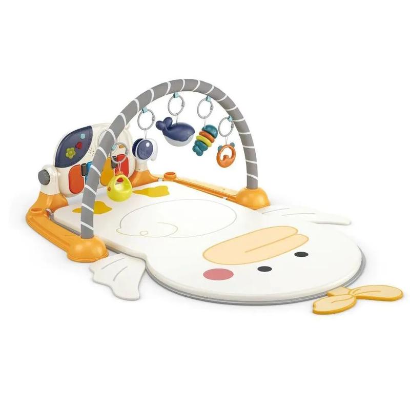 Килимок для самих маленьких, що включає ігрову панель з бізібордом. Таке незвичайне рішення дозволяє батькам надати своїй дитині все необхідне для всебічного раннього розвитку. Килимок виконаний у формі каченя, і підготував малюкам безліч цікавих звукових відкриттів: піаніно з кількома режимами роботи та брязкальце-підвіски з дзвінкими елементами та дитячими мелодіями. Ігрова панель має безліч цікавих іграшок, що чудово розвивають дрібну моторику ручок. Особливості: - 2в1: килимок та бізіборд; - музичне піаніно, яке має кілька режимів роботи; - ігрова панель з пальчиковими іграми (рухливі шестірні, дверцята, спинер); - м'який килимок у формі каченя; - 5 підвісок-брязкальця: 4 брязкальця з дзвінкими елементами та прорізувачем, 1 з музичним ефектом; - Розміри килимка: 92х59 см; - піаніно працює від 3 типу АА (у комплект не входять); - музичне брязкальце працює від 2 батарейок типу ААА (у комплект не входять). Увага. Виробник залишає за собою право змінювати комплектацію, колірну гаму та характеристики товару без попереднього повідомлення. .