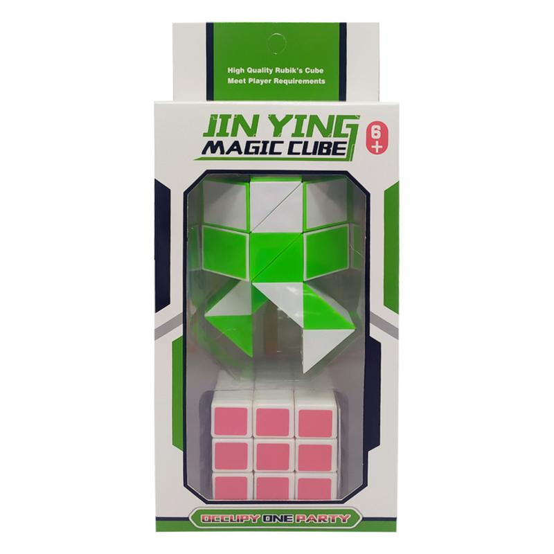 Ігровий набір складається з двох головоломок: кубика та змійки. Виконано з якісного пластику. Для дітей від 6 років. Вага 170 г Габарити упаковки 7 x 26 x 11 см. Комплектація Кубик Рубіка, змійка-логіка.